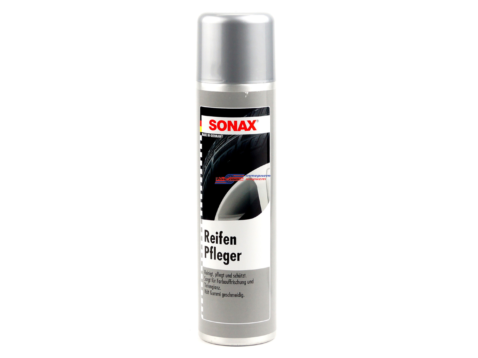 Очисник шин пінний Sonax 435300 Reifen Pfleger - застосовується для глибокого очищення гуми від забруднень. Крім цього, пінний очищувач шин SONAX володіє захисними властивостями і оберігає автопокришки від появи тріщин і зміни структури. Абсолютно нешкідливий для поверхні гуми. Порівняно зі спреєм для шин, здатний очищати поверхню краще, проте вистачає цього спрею на меншу кількість застосувань. Пінний очищувач також можна використовувати для реставрації шин, щоб надати їм більш сучасного вигляду - чорний блиск з ефектом мокрої гуми.