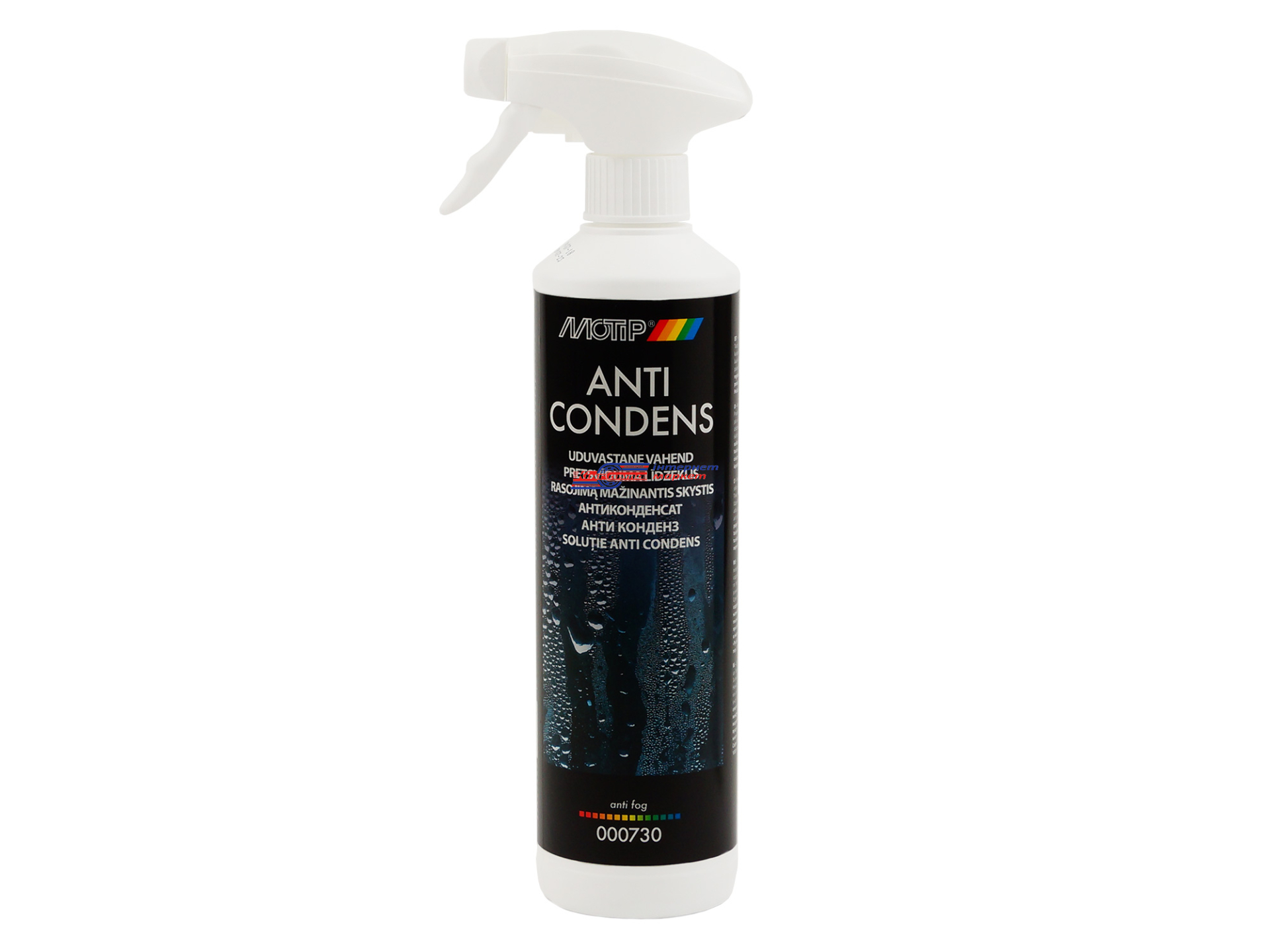 Антиконденсат Motip Anti Condens 000730BS 500мл - призначений для обробки внутрішньої сторони вітрового та інших стекол автомобіля з метою надання їх поверхні гідрофобних властивостей.