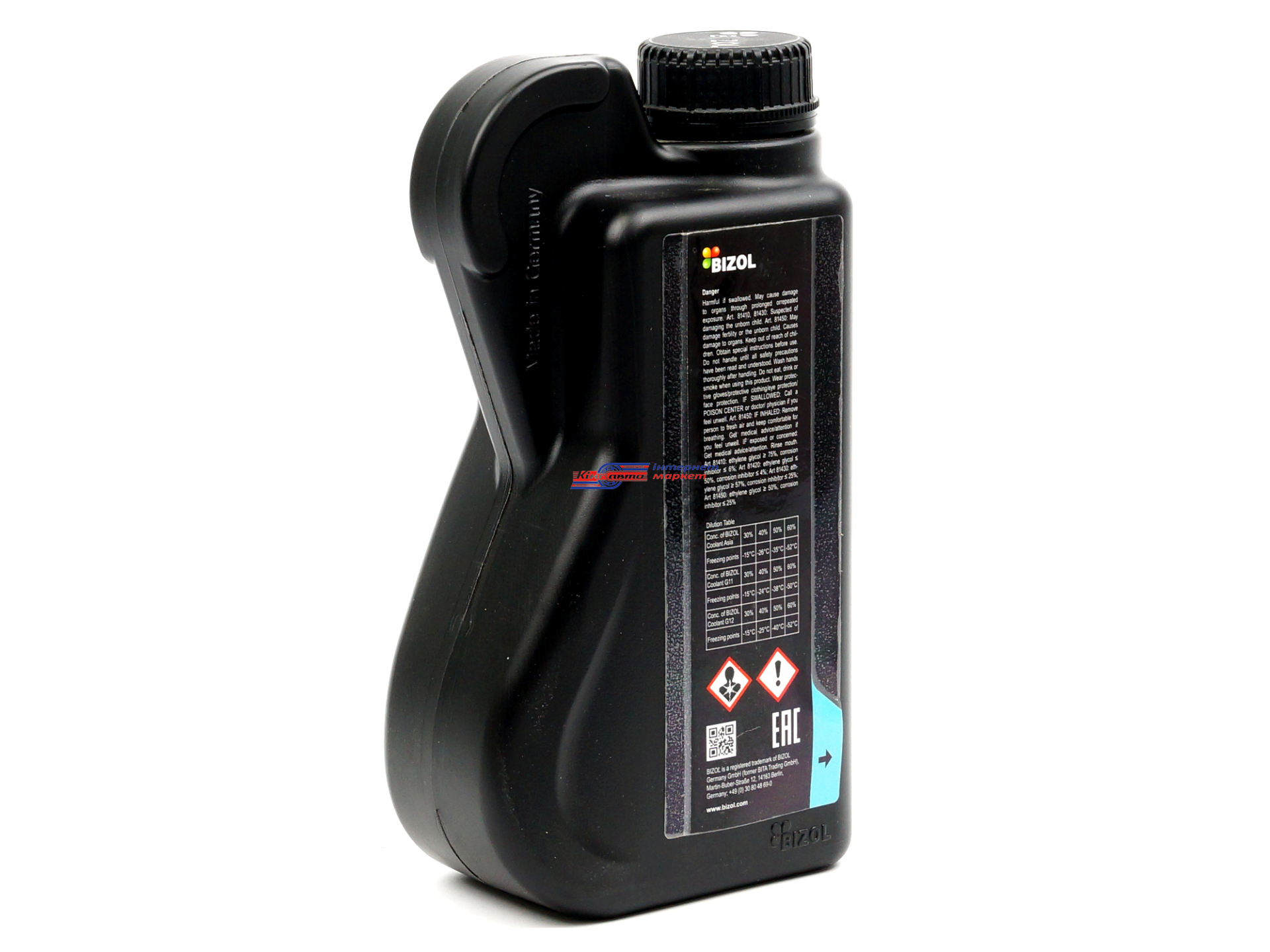 BIZOL Coolant Asia змішується в певних пропорціях для досягнення потрібних температурних параметрів: 70%/30%/-15°C 60%/40%/-24°C 50%/50%/-38°C 40%/60%/-50°C