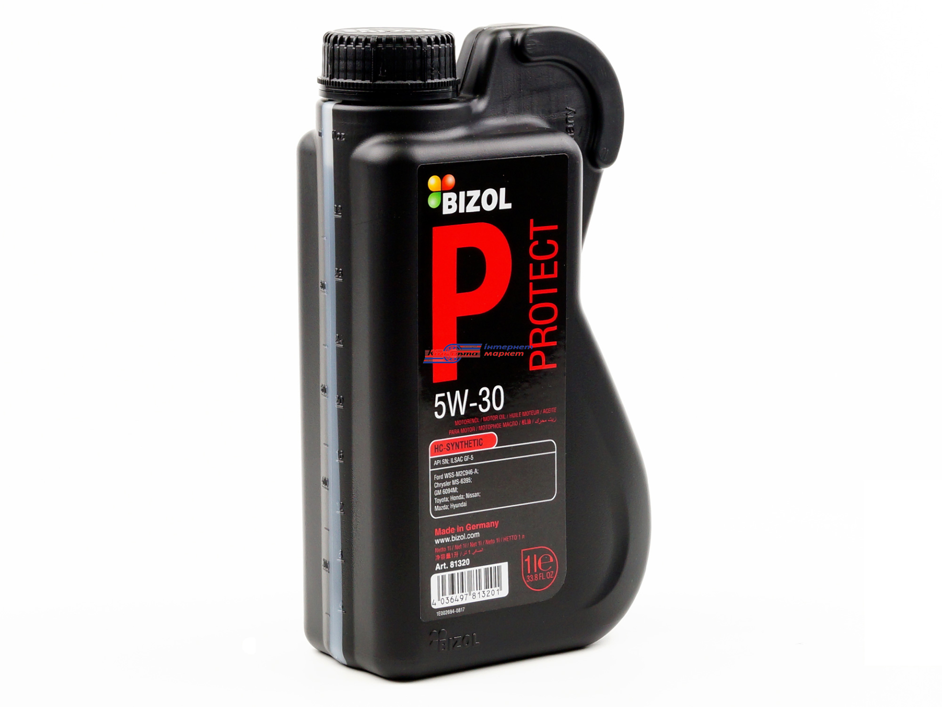 BIZOL Protect 5W-30 високоефективна моторна олива, що знижує витрата палива моторна олива, вироблена на основі спеціально відібраних синтетичних базових олив з високим індексом в'язкості та збалансованих пакетів присадок. Вона спеціально розроблена для використання в сучасних бензинових двигунах легкових автомобілів, мінівенів та автомобілів класу SUV. Ефективна формула BIZOL Protect 5W-30 забезпечує відмінне змащування всіх комронентів двигуна та подовжує термін його експлуатації. Олива також вирізняється поліпшеним захистом для новітніх систем контролю вихлопних газів і відповідає вимогам ILSAC GF-5 і GM Dexos 1 Gen. 2.