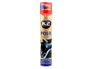 K2 Polo cockpit K407TR1 поліроль панелі приладів (полуниця) 750млМ'яко очищає і надає блиску будь-якій поверхні із пластику, вінілу, каучуку і гуми незалежно від їхнього кольору і структури. Використовувані в продукті наночастинки ідеально проникають у структуру матеріалу, щоб відновити його первинний колір і блиск. Одночасно дають довготривалий захист від нової появи бруду та пилу. Особливо рекомендується для догляду за приладовою панеллю, пластмасою, гумою, а також меблями, незалежно від кольору. Унікальна композиція делікатних ароматів залишає в салоні автомобіля приємне відчуття свіжості. Поліроль утворює невидиму плівку, яка відштовхує пил і бруд, не дозволяє поверхні вигоряти від сонячних променів.