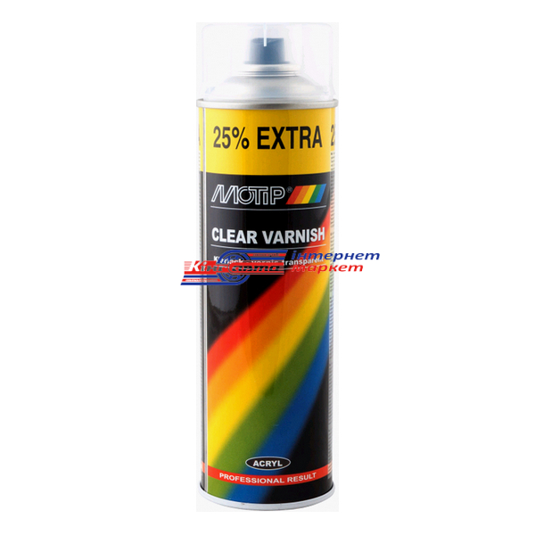 Лак аерозольний акриловий Motip 04009 Clear Varnish - застосовується як захисне покриття емалей з ефектом металік (і більшості видів фарб, окрім алкидних), для захисту оброблених і необроблених поверхонь з металу, дерева, скла, каменю та різних видів пластику.