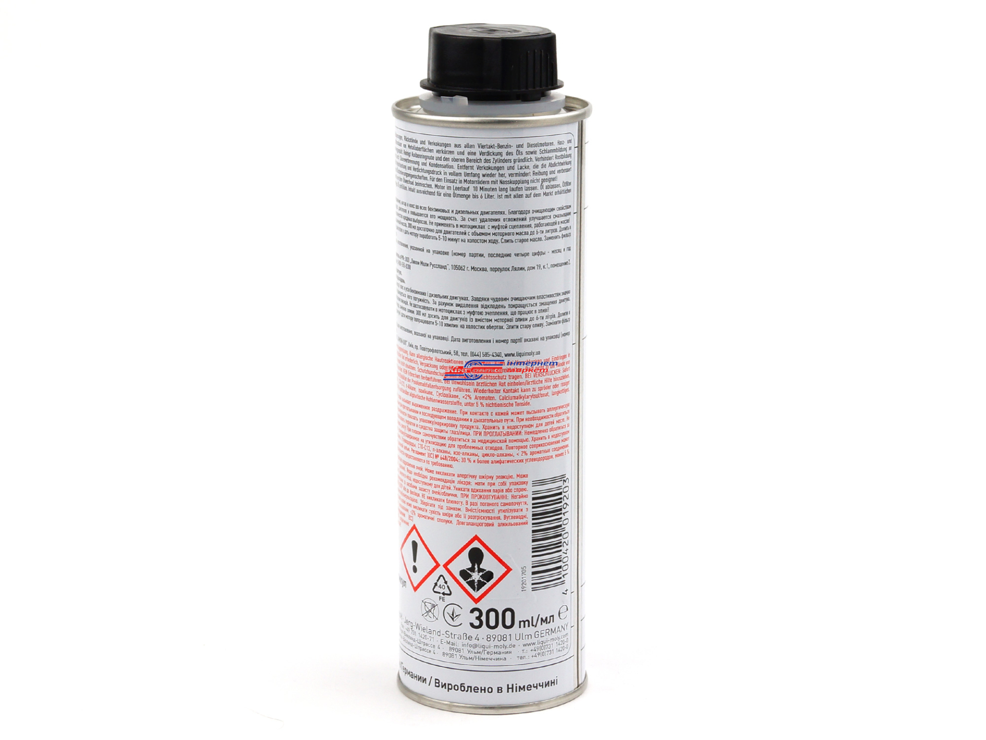 Промивання масляної системи двигуна Liqui Moly Engine Flush 1920 - ефективна комбінація мийно-диспергувальних присадок для видалення шламів, лакових утворень, нерозчинних в оливі твердих речовин з масляної системи двигуна. Може використовуватися під час кожної зміни моторної оливи. Промивання масляної системи проводиться перед заміною оливи. 300 мл присадки достатньо для 5 л моторної оливи. Необхідно просто додати промивку в стару моторну оливу, запустити двигун і дати йому попрацювати 10-15 хвилин на холостому ходу. Злити стару оливу, замінити масляний фільтр і залити нову оливу.