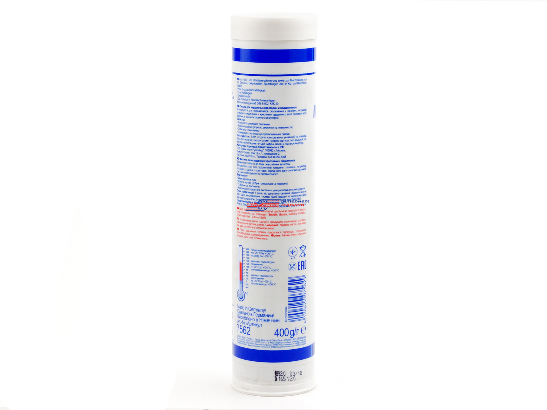 LIQUI MOLY Mehrzweckfett 7562 - літієве мастило для змащування підшипників кочення і ковзання, карданних хрестовин, що працюють за нормальних навантажень, а також за середніх і високих температур.