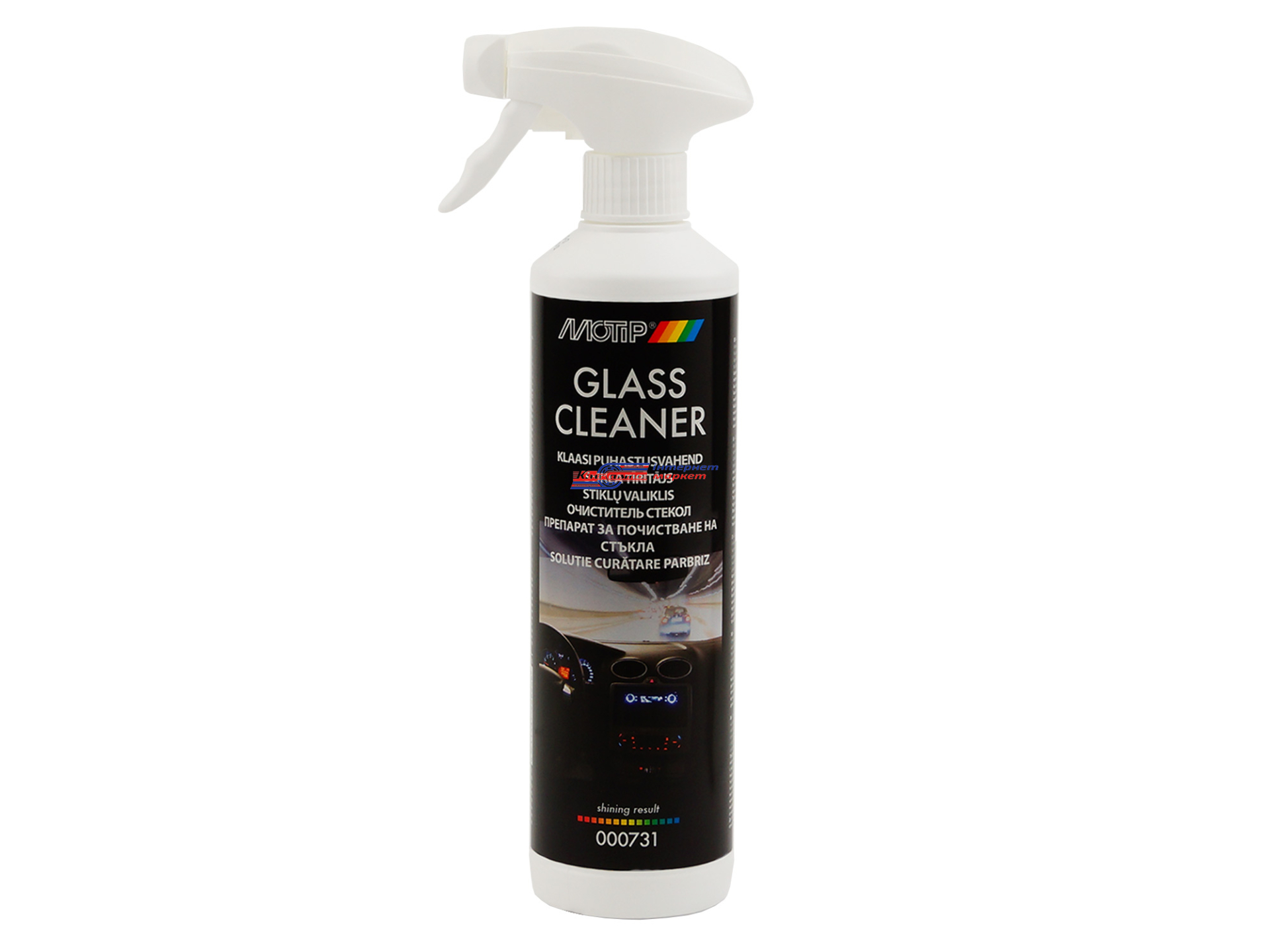 Очисник скла Glass cleaner Motip з тригером - слаболужний засіб із посиленими очисними властивостями. Призначений для видалення з поверхні скла різних дорожніх забруднень, які важко усунути звичайними засобами для догляду за автомобілем, наприклад, автошампунем. Активна формула засобу забезпечує його проникнення в структуру забруднення і руйнування її зсередини, за рахунок чого забруднення розм'якшується і легко усувається за допомогою м'якої тканини. Очищувач не залишає на поверхні плям, смуг або голограм для найкращого огляду та безпечного керування автомобілем у будь-який час доби. Нейтрально по відношенню до ущільнювачів вікна, щіток склоочисника та інших елементів з гуми, не пошкоджує їх. Завдяки упаковці з розпилювачем засіб зручно наносити на забруднення, і він економно витрачається.