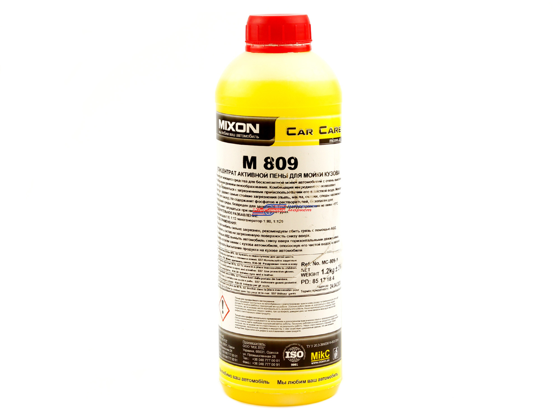 Mixon M-809 піна активна -сильно концентрований мийний засіб для миття легкових і вантажних автомобілів. Утворює стійку піну і легко змивається, залишаючи на кузові автомобіля захисну плівку. Легко видаляє всі види бруду: олію, нафту, смог, комах тощо. Не чинить жодних впливів на алюмінієві, хромовані та пластикові деталі.