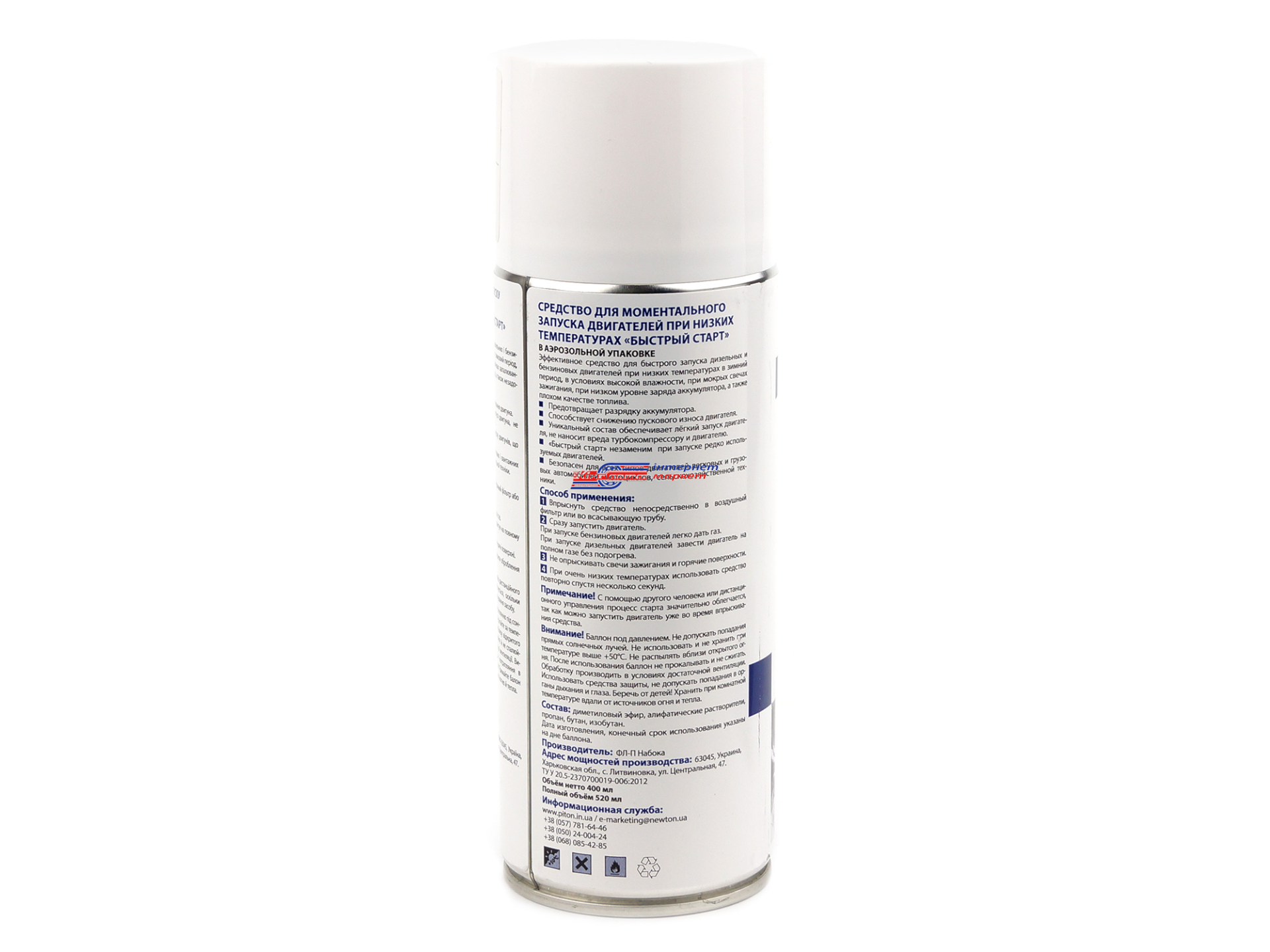 "Швидкий старт" PITON - ефективний засіб для швидкого запуску дизельних і бензинових двигунів за низьких температур у зимовий період, в умовах високої вологості, за мокрих свічок запалювання, за низького рівня заряду акумулятора, а також за незадовільної якості палива. "Швидкий старт" допомагає запобігти розрядці акумулятора, а також знизити пусковий знос двигуна. "Швидкий старт" незамінний під час запуску двигунів, що рідко використовуються. Безпечний для всіх типів двигунів легкових і вантажних автомобілів, мотоциклів, сільськогосподарської техніки.