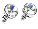 Форма фар DLAA LA 9866x RY кругла, діаметром 157мм, висота з кріпленням 192мм і глибина посадки 103мм. Корпус хромований з гладким склом кольору хамелеон, додасть зовнішньому вигляду Вашого автомобіля індивідуальності.