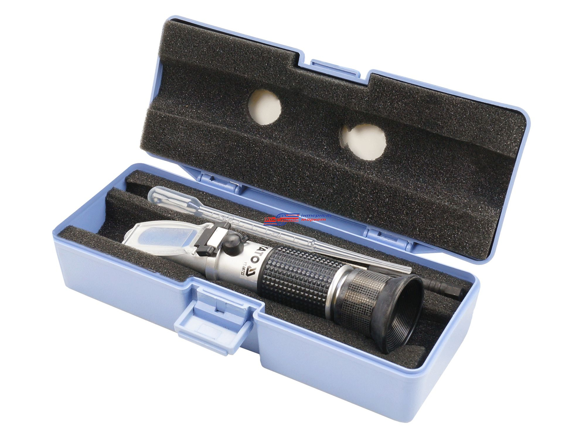 Професійний рефрактометр Yato YT-06722 вимірює рідини легкових автомобілів і автобусів. Рефрактометр легко визначає точки замерзання рідини омивача, охолоджувальної рідини та етиленгліколю. Інструмент упакований у міцний пластиковий ящик.
